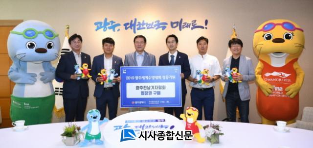 ±¤ÁÖ±¤¿ª½Ã¿Í ±¤ÁÖ¼¼°è¼ö¿µ¼±¼ö±Ç´ëȸÁ¶Á÷À§¿øÈ¸´Â 4ÀÏ ½Ãû Á¢°ß½Ç¿¡¼ ±¤ÁÖÀü³²±âÀÚÇùȸ ±èÈ¿¼º ȸÀå, Á¶±âö ¼ö¼®ºÎȸÀå, ¼±Á¤Å ºÎȸÀå, ³ª±â¼ö ±¤ÁÖÀü³²°æÁ¦´Üü¿¬ÇÕȸÀå, ¹ÚâÇå ±¤ÁÖÄ¡°úÀÇ»çȸÀå, Á¤Çöö ±¤ÁÖ¾à»çȸÀå, À̼÷ÀÚ ±¤ÁÖ°£È£»çȸÀå µîÀÌ Âü¿©ÇÑ °¡¿îµ¥ ¼ö¿µ´ëȸ ÀÔÀå±Ç ±¸¸ÅÁõ¼ Àü´Þ½ÄÀ» Â÷·Ê·Î °¡Á³´Ù.