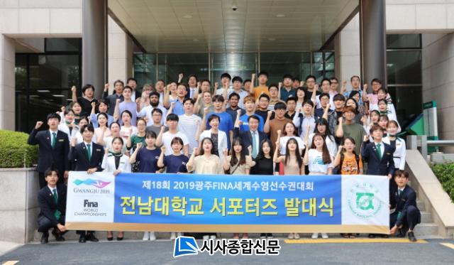 Àü³²´ë´Â À̳¯ ¿ÀÈÄ ´ëÇк»ºÎ Çö°ü¿¡¼ Á¤º´¼® ÃÑÀåÀ» ºñ·ÔÇÑ Çг» º¸Á÷±³¼ö¿Í Á÷¿ø, ¿Ü±¹ÀÎ À¯Çлý, ÇлýÈ«º¸´ë»ç, ´ëȸ ÀÚ¿øºÀ»çÇлý µî 1¹é¿©¸íÀÌ Âü¼®ÇÑ °¡¿îµ¥, Á¦18ȸ 2019±¤ÁÖ FINA¼¼°è¼ö¿µ¼±¼ö±Ç´ëȸ ¼Æ÷ÅÍÁî ¹ß´ë½ÄÀ» °®°í, ´ëȸ±â°£µ¿¾È ¼ö¿µ´ëȸ È«º¸¸¦ ÅëÇÑ ºÕ Á¶¼º°ú °¢±¹ ¼±¼ö´Ü °æ±â °ü¶÷ ¹× ´ÜüÀÀ¿ø µî¿¡ Àû±Ø ³ª¼±â·Î Çß´Ù.