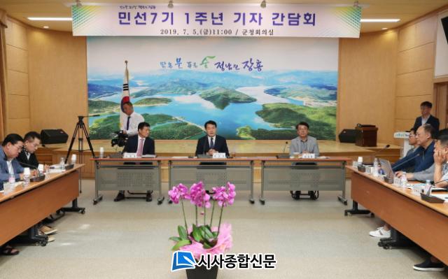 À̳¯ ÀåÈﱺû »óȲ½Ç¿¡¼ ¿¸° ±âÀÚ °£´ãȸ¿¡´Â ¾ð·ÐÀÎ 40¸íÀ» Æ÷ÇÔÇØ °ü°è °ø¹«¿ø µî 70¿©¸íÀÌ Âü¼®Çß´Ù. °£´ãȸ´Â ¹Î¼±7±â Ãâ¹ü 1Áֳ⠼º°ú¿Í ¾ÕÀ¸·ÎÀÇ ±ºÁ¤ ¿î¿µ¹æÇâ ¼³¸í, ÁúÀÇÀÀ´ä ¼øÀ¸·Î ÁøÇàµÆ´Ù.