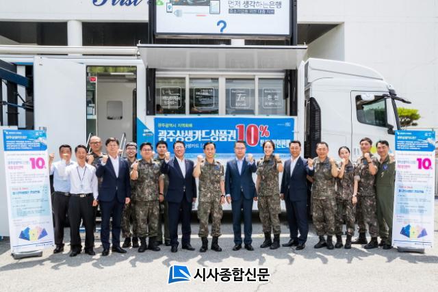 Áö³ 9ÀÏ ¿ÀÀü ¼ÛÁ¾¿í ±¤ÁÖÀºÇàÀåÀº Á¦1ÀüÅõºñÇà´ÜÀ» ¹æ¹®ÇÏ¿© ±Ç¿À¼® ´ÜÀå°ú À庴µéÀ» ´ë»óÀ¸·Î ±¤ÁÖ»ó»ýÄ«µå¸¦ È«º¸ÇÏ°í ÆÇ¸Å ÃËÁø¿¡ ³ª¼¹´Ù. ±¤ÁÖÀºÇàÀº 9ÀϺÎÅÍ 10ÀϱîÁö ÀÌÆ²°£ Á¦1ÀüÅõºñÇà´Ü¿¡ À̵¿Á¡Æ÷¸¦ ¼³Ä¡ÇØ À庴µé¿¡°Ô ±¤ÁÖ»ó»ýÄ«µå ÆÇ¸Å¸¦ ½Ç½ÃÇÑ´Ù.