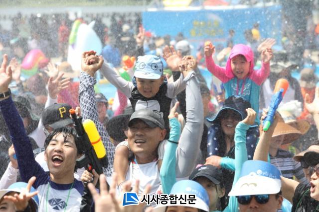 °Å¸®·Î ½ñ¾ÆÁö´Â ½Ã¿øÇÑ ¹°ÁٱⰡ ¹«´õÀ§¿Í ¹°½Î¿òÀÇ ¿±â¸¦ ¾Ä¾î ³½´Ù. Áö»óÃÖ´ë ¹°½Î¿òÀåÀº Áö³ÇØ º¸´Ù ±Ô¸ð°¨À» Ű¿ö º¸´Ù ¸¹Àº Âü°¡ÀÚµéÀÌ Áñ±æ ¼ö ÀÖµµ·Ï ¸¸µé¾ú´Ù. ¿öÅͶô ½ºÅ×ÀÌÁö, ¾ÆÄí¾Æ Å×À̳Ê, È®ÀåµÈ °¡¼³ ¼ö¿µÀå µî °ø°£ÇÁ·¹ÀÓÀÌ ±âÁ¸¿¡ ºñÇØ ¿õÀåÇØÁö¸é¼ ¹ÚÁø°¨ ³ÑÄ¡µµ·Ï À籸¼ºµÆ´Ù. ¸ÅÀÏ ¿ÀÈÄ 3½Ã ŽÁø°¿¡¼´Â ¡®È²±Ý¹°°í±â¸¦Àâ¾Æ¶ó¡¯°¡ ÆîÃÄÁø´Ù.