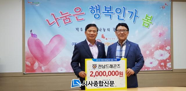 À̳¯ Àü´ÞµÈ ¼º±ÝÀº Àü³²µå·¡°ïÁî¿¡¼ Àü³² Áö¿ª ³ó°¡µ½±â ÀÏȯÀ¸·Î ¾çÆÄ(2kg) 5,000¸ÁÀ» ±¸ÀÔÇÏ¿© Áö³ 7¿ù 14ÀÏ Àü³²µå·¡°ïÁî Ȩ°æ±â¿¡¼ °üÁߵ鿡°Ô ¾çÆÄ ¹«·á ³ª´®Çà»ç¸¦ ÁøÇàÇÏ¸é¼ Áö¿ª û¼Ò³â °¡Àå µ½±â ¸ð±ÝȰµ¿À» ÆîÃÄ È¨°æ±â¸¦ ã¾ÆÁØ °üÁß, Àü³²µå·¡°ïÁî ¼±¼ö´Ü, Á÷¿øµéÀÌ ÇÔ²² Âü¿©ÇÏ¿© ÀÚ¹ßÀû ¸ð±ÝµÈ ¼º±ÝÀÌ´Ù.