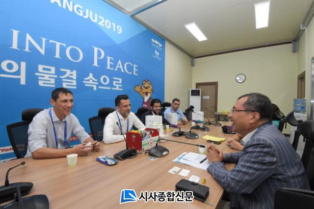 [½Ã»çÁ¾ÇսŹ® = ¿À½ÂÅà ±âÀÚ] ´ëȸÁ¾ÇÕ»óȲ½Ç¿¡¼ 2020³âFINA25¹ÌÅͼôÄÚ½º ¼±¼ö±Ç´ëȸ¸¦ ÁغñÁßÀÎ ¾ÆºÎ´Ùºñ 2020 Á¶Á÷À§ Ahmed Abdul Allah Al Qubaisi(¾ÆºÎ´Ùºñ ½ºÆ÷Ã÷ÆòÀÇȸ ¸¶ÄÉÆÃ & È«º¸ ±¹Àå)°ú Talal Al Hashemi(¾ÆºÎ´Ùºñ ½ºÆ÷Ã÷ÆòÀÇȸ ±â¼úÃѰý ±¹Àå), Nouf Ali(¾ÆºÎ´Ùºñ ½ºÆ÷Ã÷ÆòÀÇȸ À̺¥Æ® ºÎÀå) µî ½Ç¹«ÀÚ 5¸íÀº Á¶Á÷À§ ÀÌ´ÞÁÖ ±âȹÃѹ«º»ºÎÀåÀ» ¸¸³ª ±¤ÁÖ 2019 ´ëȸÀÇ ¼º°ø »ç·Ê ¹× ³ëÇϿ츦 ÀüÇØ µè°í ÀÖ´Ù.