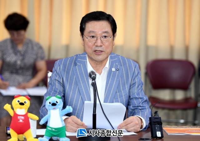 À̿뼷 ´ëȸ Á¶Á÷À§¿øÀå °â ±¤ÁÖ±¤¿ª½ÃÀåÀº 30ÀÏ ¿ÀÈÄ ½Ãû ÁßȸÀǽǿ¡¼ ¡®2019±¤ÁÖ¼¼°è¸¶½ºÅÍÁî¼ö¿µ¼±¼ö±Ç´ëȸ Áغñ»óȲ º¸°íȸ¡¯¸¦ ÁÖÀçÇÏ°í ¡°¸¶½ºÅÍÁî´ëȸ´Â ¹«¾ùº¸´Ù ¹«°áÁ¡ ¾ÈÀüÇÑ ´ëȸ·Î Ä¡·¯Áú ¼ö ÀÖµµ·Ï ÃÖ¼±À» ´ÙÇØÁֱ⠹ٶõ´Ù¡±°í ´çºÎÇß´Ù.