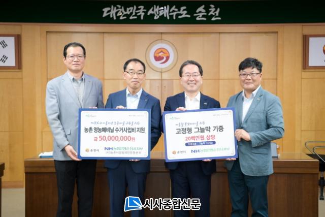 [½Ã»çÁ¾ÇսŹ® = Àå¹Î±Ô ±âÀÚ] NH³óÇùÀºÇà ¼øÃµ½ÃÁöºÎ(ÁöºÎÀå ±èȸõ)Àº 5ÀÏ ³óÃÌ»ç¶û ¿µ³óÆóºñ´Ò ¼ö°Å»ç¾÷ÀÇ ÀÏȯÀ¸·Î ¼ö°Åº¸»óºñ 5,000¸¸¿øÀ» ¼øÃµ½Ã¿¡ ±âÁõÇß´Ù. ¶Ç ¿©¸§Ã¶ Æø¿°À¸·Î ÀÎÇÑ ½Ã¹Î ºÒÆí ÃÖ¼Òȸ¦ À§ÇØ 2,000¸¸¿ø »ó´çÀÇ °íÁ¤½Ä ±×´Ã¸· 10°³¸¦ ±âÁõÇÏ¿´´Ù.