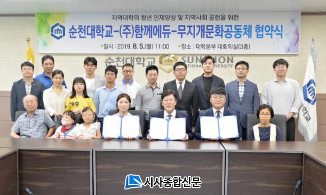 À̳¯ Çù¾à½Ä¿¡´Â ¼øÃµ´ë °í¿µÁø ÃÑÀå°ú Á¤µ¿º¸ ÇлýóÀå, °ÇüÀÏ ±âȹóÀå, ±è´ëÈñ ¿¡ÄÚ¿¡µàÅ×ÀÎ¸ÕÆ®»ç¾÷´ÜÀå, ¹«Áö°³¹®È°øµ¿Ã¼ Àå¼øÈñ ´ëÇ¥, ¹ÚÇüÁÖ ÁöÈÖÀÚ, ÃÖÀº¼÷ ´Ü¹«Àå, ¢ßÇÔ²²¿¡µà ¹Ú½ÃÈÆ ´ëÇ¥ µîÀÌ Âü¼®Çß´Ù.