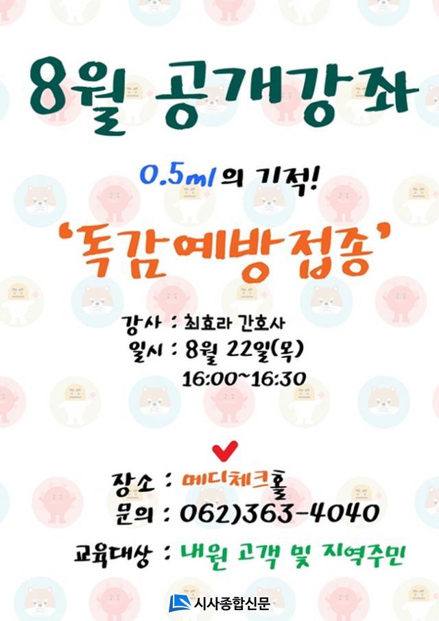 [½Ã»çÁ¾ÇսŹ® = ¿À½ÂÅà ±âÀÚ] Çѱ¹°Ç°°ü¸®Çùȸ ±¤ÁÖÀü³²ÁöºÎ(¿øÀå ±èµ¿±Ô)´Â 2019³â 8¿ù 22ÀÏ(¸ñ) ¿ÀÈÄ4½Ã, û»ç ³» ¸ÞµðüũȦ(ÁöÇÏ1Ãþ)¿¡¼ ¡®0.5mlÀÇ ±âÀû, µ¶°¨¿¹¹æÁ¢Á¾¡¯ À» ÁÖÁ¦·Î Áö¿ªÁֹΰú ÇÔ²²ÇÏ´Â ¹«·á °Ç°°Á¸¦ ½Ç½ÃÇÑ´Ù.