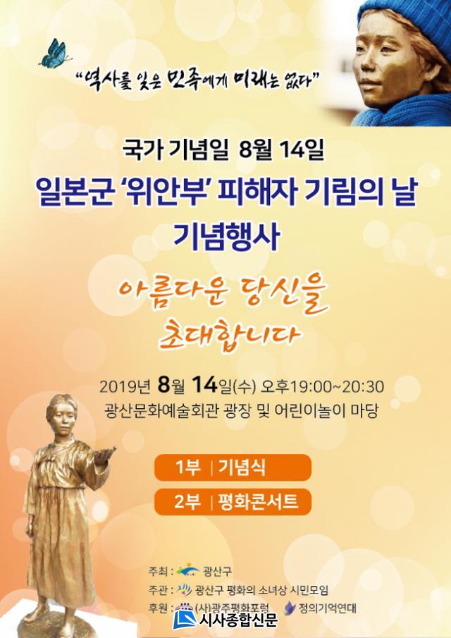 À̳¯ Çà»ç´Â ÀϺ»±º¡®À§¾ÈºÎ¡¯ ÇÇÇØÀÚÀÇ ¸í¿¹¿Í ÀαÇÀ» ȸº¹ÇÏ°í ½Ã¹ÎÀÇ ¿Ã¹Ù¸¥ ¿ª»ç°üÀ» Á¤¸³Çϱâ À§ÇØ ÆòÈÀÇ ¼Ò³à»óÀ» °Ç¸³ÇÑ ¡®±¤»ê±¸ ÆòÈÀÇ ¼Ò³à»ó ½Ã¹Î¸ðÀÓ¡¯ ÁÖ°üÀ¸·Î ¿¸®¸ç, ½ÄÀüÇà»ç, ±â³ä½Ä, ÆòÈÄܼƮ ¼øÀ¸·Î ÁøÇàµÈ´Ù.
