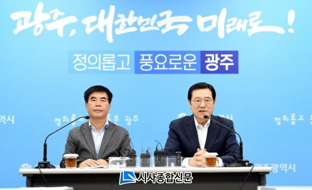À̿뼷 ±¤ÁÖ½ÃÀå°ú À±Á¾ÇØ ÀÇÀåÀº 25ÀÏ ±¤ÁÖ½Ãû ºê¸®Çη뿡¼ °øµ¿±âÀÚ°£´ãȸ¸¦ °®°í ¡°ÀϺΠ¾ð·Ð¿¡¼ ¡®³ëÁ¶ ¸ù´Ï¿¡-»ç¾÷ÁÂÃÊ Çö½ÇÈ ¿ì·Á¡¯ µî »ç½ÇÀÌ ¾Æ´Ñ ³»¿ëµéÀÌ º¸µµµÇ¸é¼ ÅõÀÚ°¡µé¿¡°Ô ºÒÇÊ¿äÇÑ ºÒ¾È°¨À» Á¶¼ºÇϰí ÅõÀÚȯ°æÀ» ÀúÇØÇϰí ÀÖ¾î ¾ÈŸ±õ´Ù¡±¸ç ¡°»ç½Ç°ü°è¸¦ ºÐ¸íÇÏ°Ô ¸»¾¸µå¸®±â À§ÇØ °øµ¿±âÀÚ°£´ãȸ¸¦ °®°Ô µÆ´Ù¡±°í ¹àÇû´Ù.