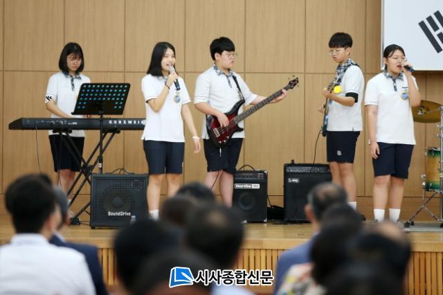 ½Ã³ªºê·Î ÆÀÀº À̳¯ ȸÀÇ¿¡ ¾Õ¼ 20¿© ºÐ µ¿¾È ¡®°ñ¸ñ±æ¡¯ ¡®»ç¶ûºñ¡¯ ¡®¼ÕÀâ¾ÆÁà¿ä¡¯ ¡®»ç¶ûÀÇ ¹åµ¥¸®¡¯ µî ´ëÁß°¡¿ä 4°îÀ» ¿¬ÁÖÇß´Ù. ƯÈ÷, ÇлýµéÀº ÀÌ ÀÚ¸®¿¡¼ ±³À°°¨¿¡°Ô µå¸®´Â ÆíÁö¸¦ ³¶µ¶ÇØ ´«±æÀ» ²ø¾ú´Ù. ÆÀÀ» ´ëÇ¥ÇØ ¹ÚÇÏÀº ÇлýÀÌ ÀÐÀº ÆíÁö¿¡¼ ÇлýµéÀº ¡°±×µ¿¾È ¼±¹è°¡ ÈĹ踦 °¡¸£Ä¡´Â ¹æ½ÄÀ¸·Î ¿î¿µÇØ¿À´Ù ¿ÃÇØ û¼Ò³â¹Ì·¡µµÀüÇÁ·ÎÁ§Æ®¿¡ »ÌÇô ¸¹Àº Áö¿øÀ» ¹ÞÀº ´öºÐ¿¡ ½Ç·Â Çâ»ó¿¡ Å« µµ¿òÀÌ µÇ°í ÀÖ´Ù.¡±¸ç °í¸¶¿òÀ» Ç¥½ÃÇß´Ù.
