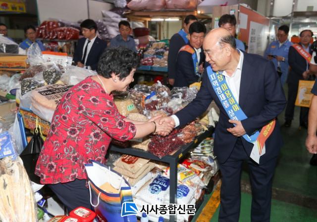 Á¤Çöº¹ ½ÃÀåÀº »óÀεé°ú ÀüÅë½ÃÀåÀ» ãÀº ¼Õ´Ô°ú ÀÏÀÏÀÌ ¾Ç¼ö¸¦ ³ª´©¾úÀ¸¸ç °úÀÏ, ä¼Ò, °Ç¾î¹° µî »óǰÀ» Á÷Á¢ ±¸ÀÔÇÏ°í »óÀεé°ú ¼ÒÅëÀÇ ½Ã°£À» °¡Á³´Ù. Áö³ 7¿ù¿¡ ºÎÀÓÇÑ ±è¸í¿ø ºÎ½ÃÀåÀº »óÀεé°ú Àλ縦 ³ª´©¸ç, Á߸¶½ÃÀåÀÌ ¹øÃ¢ÇÒ ¼ö ÀÖµµ·Ï ÇÔ²² ³ë·ÂÇÒ °ÍÀ» ¾à¼ÓÇß´Ù.