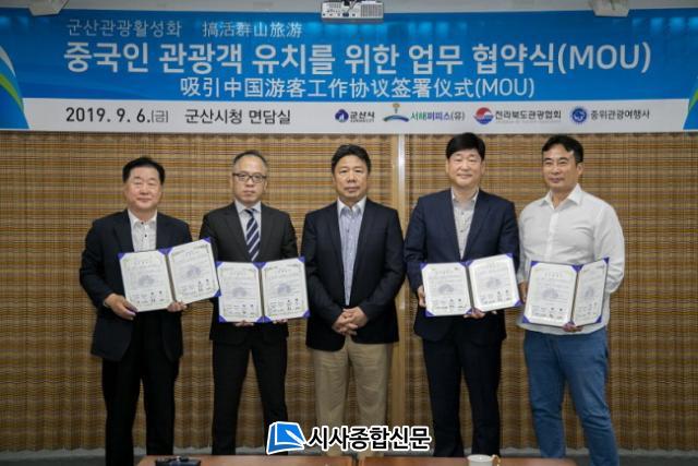 [½Ã»çÁ¾ÇսŹ® = ³²Àç¿Á ±âÀÚ] ±º»ê½Ã´Â Áö³ 6ÀÏ Áß±¹ÀÎ °ü±¤°´ À¯Ä¡¸¦ À§ÇÑ ºÏ°æ ÁßȹÎÁ·±¹Á¦¹®ÈÃßÁøÁß½É(±¹°¡¹®È´ã´ç ÃÖ°í±â°ü), ÁßÀ§±¹Á¦¿©Çà»ç(Áß±¹ °ü±¤Ã» ½ÂÀξ÷ü), (À¯)¼ÇØÆÛÇǽº(¹éÁ¦¸é¼¼Á¡ ¿î¿µ¾÷ü, ÀÍ»ê½Ã ¼ÒÀç), Àü¶óºÏµµ °ü±¤Çùȸ¿Í ¾÷¹«Çù¾à(MOU)À» ü°áÇß´Ù°í ¹àÇû´Ù.