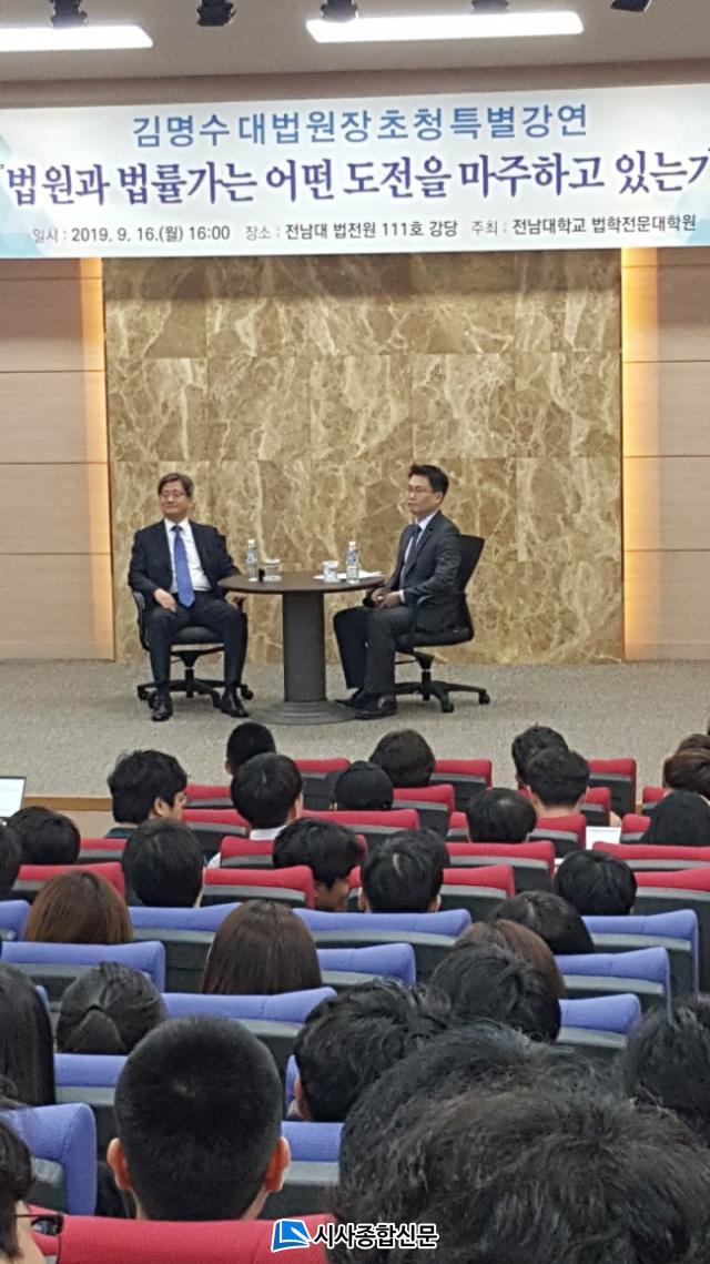 ±è¸í¼ö ´ë¹ý¿øÀåÀº 16ÀÏ Àü³²´ëÇб³¸¦ ¹æ¹®ÇØ ¹ýÇÐÀü¹®´ëÇпø Çлý°ú ±³Á÷¿ø µî 250¿©¸íÀ» ´ë»óÀ¸·Î ¡®¹ý¿ø°ú ¹ý·ü°¡´Â ¾î¶² µµÀüÀ» ¸¶ÁÖÇϰí Àִ°¡¡¯¶ó´Â ÁÖÁ¦ÀÇ ÃÊûƯ°À» °¡Á³´Ù. ¶Ç °ÀÇ ÈÄ¿¡´Â Çлýµé°ú ÀÚÀ¯·Î¿î ÅäÅ© ÄܼƮ Çü½ÄÀÇ ÁúÀÇ ÀÀ´ä½Ã°£À» °¡Á³´Ù.