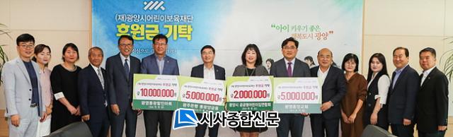 À̳¯ ±âŹ½Ä¿¡¼ ±¤ÁÖÀºÇൿ±¤¾ç±ÝÀ¶¼¾ÅÍ(¼¾ÅÍÀå ÀÌÇü¼®)°¡ 5¹é¸¸ ¿ø, ±¤¾ç½Ã°ø°øÇü¾î¸°ÀÌÁý¿¬ÇÕȸ(ȸÀå ÇÇ¿Á¼ø) 2¹é¸¸ ¿ø, ±¤¿µÁß¾Ó±³È¸(¸ñ»ç Á¶±â¹Î) 5¹é¸¸ ¿ø, ±¤¿µµ¿±¤ÇÒÀθ¶Æ®(´ëÇ¥ Â÷¿µ»ï) 1õ¸¸ ¿øÀÇ ÈÄ¿ø±ÝÀ» Àü´ÞÇß´Ù.