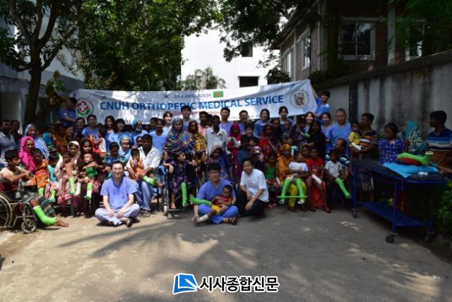 Àü³²´ë Àǰú´ëÇаú ´ëÇлý, Á¤Çü¿Ü°ú ±³¼ö, Àü°øÀÇ, Àü³²´ë º´¿ø °£È£»ç µî ¸ðµÎ 18¸íÀ¸·Î ±¸¼ºµÈ ÇØ¿ÜÀÇ·áºÀ»ç´ÜÀº Ãß¼®¿¬ÈÞÀÎ Áö³ 9¿ù 11ÀϺÎÅÍ 16ÀϱîÁö ¹æ±Û¶óµ¥½Ã ¼öµµ ´ÙÄ«½Ã ¿Ü°û ²Ã¶÷¶Ê¶ó º´¿ø¿¡¼ ³ú¼º¸¶ºñ, ¼±Ãµ¼º ¸¸°îÁ·, Ä¡·á¹ÞÁö ¸øÇÑ ¼Ò¾Æ °ñÀý, ¼±Ãµ¼º ±âÇü ¹× º¯ÇüÀ» ¾Î°í ÀÖ´Â ¾à 250¸íÀÇ ÁßÁõ ¼Ò¾Æ ȯÀÚ¸¦ ´ë»óÀ¸·Î ¿Ü·¡ Áø·á¸¦ Çϰí, ÀÌÁß 65¸íÀÇ È¯ÀÚ¿¡°Ô 3Àϵ¿¾È ¹ã³·¾ø´Â ¼ö¼úÀ» ÁøÇàÇß´Ù. ¶Ç ¹æ±Û¶óµ¥½Ã ÀÇ·á½Ã¼³ Áö¿ø ÈÄ¿ø±Ý°ú ÀǷṰǰÀ» ±âºÎÇß´Ù.