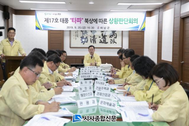 [½Ã»çÁ¾ÇսŹ® = ÀÌÁ¤¿¬ ±âÀÚ] ÇØ³²±ºÀº Á¦17È£ ÅÂdz¡®Å¸ÆÄ¡¯¿¡ ´ëºñÇØ 20ÀÏ ¿ÀÈÄ 4½Ã 30ºÐ ¸íÇö°ü ±º¼ö ÁÖÀç·Î Àç³´ëÀÀ°ü·Ã ½Ç°úÀåµéÀÌ ¸ðÀÎ °¡¿îµ¥ ÅÂdz ºÏ»ó¿¡ µû¸¥ »óȲÆÇ´ÜȸÀǸ¦ ½Ç½ÃÇß´Ù.