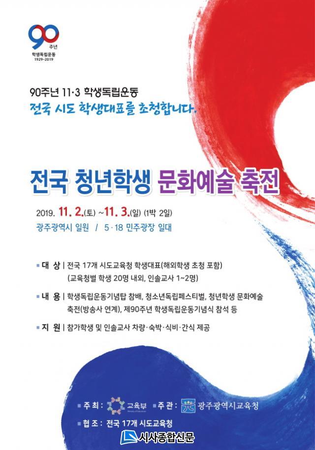 ¿À´Â 11¿ù 2Àϰú 3ÀÏ, 1¹Ú2ÀÏ Çà»ç·Î ÁøÇàµÇ´Â ¡®Àü±¹ û³âÇлý ¹®È¿¹¼ú ÃàÀü¡¯Àº Àü±¹ ½Ãµµ Çлý´ëÇ¥ ¹æ¹®´ÜµéÀÌ Áý°áÇØ ±¤ÁÖÇлýµ¶¸³¿îµ¿±â³äž Âü¹è, û¼Ò³âµ¶¸³Æä½ºÆ¼¹ú, ¹æ¼Û»ç ¿¬°è ¹®È¿¹¼ú °ø¿¬, 90ÁÖ³â Á¤ºÎ±â³ä½Ä Çà»ç Âü¼® µîÀ¸·Î ÁøÇàµÈ´Ù. ¶ÇÇÑ Âü°¡ ½Ãµµ Çлý´ëÇ¥´ÜÀº ´ç½Ã Âü¿© Çб³ÀÎ ±¤ÁÖÁ¦Àϰí¿Í Àü³²¿©°í¸¦ ¹æ¹®ÇØ Çлý±â³äž°ú ¿©Çеµ±â³äºñ Âü¹è µî Çб³¿ª»ç°üÀ» µÑ·¯º¼ ¿¹Á¤ÀÌ´Ù.