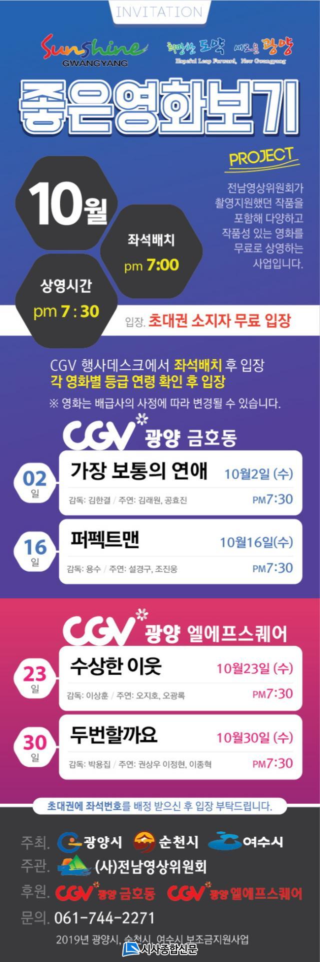 »ó¿µÀÛǰÀº 2ÀÏ(¼ö) ¡®°¡Àå º¸ÅëÀÇ ¿¬¾Ö¡¯¸¦ ½ÃÀÛÀ¸·Î 16ÀÏ(¼ö) ¡®ÆÛÆÑÆ®¸Ç¡¯, 23ÀÏ(¼ö) ¡®¼ö»óÇÑ ÀÌ¿ô¡¯, 30ÀÏ(¼ö) ¡®µÎ¹øÇÒ±î¿ä¡¯ µî ÃÑ 4ȸ »ó¿µµÈ´Ù. CGV ±¤¾çÁ¡(¸ô¿Àºê±¤¾ç)¿¡¼ 2Àϰú 16ÀÏ, CGV ±¤¾ç¾Æ¿ï·¿Á¡(¿¤¿¡ÇÁ½ºÄù¾î)¿¡¼ 23ÀÏ, 30ÀÏ ¸ÅÁÖ ¼ö¿äÀÏ Àú³á 7½Ã 30ºÐ ÁøÇàµÈ´Ù.