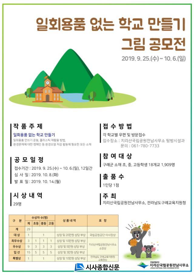 °ø¸ð±â°£Àº 9. 25.(¼ö).~ 10. 6.(ÀÏ)±îÁö 12Àϰ£À̸ç, ±×¸²Á¢¼ö´Â Áö¸®»ê±¹¸³°ø¿øÀü³²»ç¹«¼Ò ޹æ½Ã¼³°ú(061-780-7733)·Î Á¢¼öÇÏ¸é µÈ´Ù. ¼ö»óÀÚ´Â ÃÑ 29¸íÀ¸·Î, ±¹¸³°ø¿ø°ø´ÜÀÌ»çÀå»ó µî »óÀå°ú ºÎ»óǰÀÌ Àü´ÞµÇ¸ç, ¼ö»óÀÛÀº Áö¸®»êÀü³²»ç¹«¼Ò ޹æ¾È³»¼Ò¿¡ Àü½ÃÇÒ ¿¹Á¤ÀÌ´Ù.