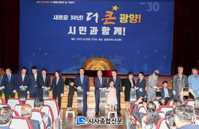 ¡®2019 ±¤¾ç½Ã¹ÎÀÇ ³¯¡¯ ±â³ä½Ä°ú º´ÇàÇÏ¿© ½Ç½ÃµÈ ¡®½Ã½Â°Ý 30Áֳ⠺ñÀü ¼±Æ÷½Ä¡¯Àº ´õ Å©°í °ÇÑ »õ·Î¿î ±¤¾ç½Ã´ë 30³âÀ» ¸ðµç ½Ã¹Î°ú ÇÔ²² ÈûÂ÷°Ô ¿¾î°¡ÀÚ´Â Àǹ̸¦ ´ã¾Æ ÁøÇàµÆ´Ù.