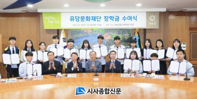 À̳¯ À¯´ç¹®ÈÀç´Ü(ÀÌ»çÀå ÃÖ»ó¿Á)Àº ȼø±º °ü³» °íµîÇб³¿¡¼ ÃßõÇÑ Çлý 20¸í¿¡°Ô °¢ 100¸¸ ¿ø¾¿ ÃÑ 2000¸¸ ¿øÀ» Áö¿øÇß´Ù.