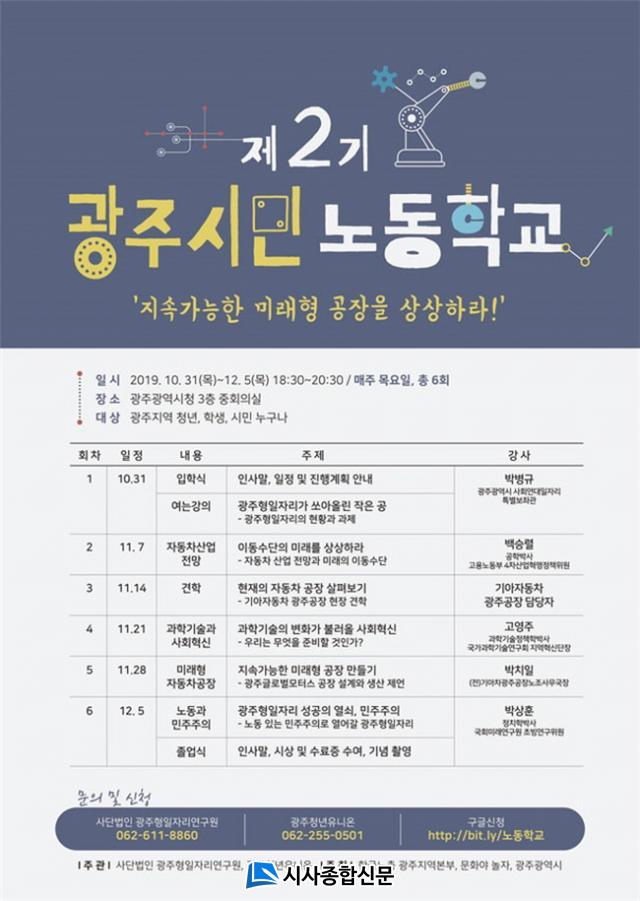½Ã¹Î ´©±¸³ª Âü¿© °¡´ÉÇÏ¸ç ¼ö°À» ¿øÇÏ´Â ½Ã¹ÎÀº ±¤Áֽà ³ëµ¿Çù·Â°ü½Ç(062-613-1382)À̳ª (»ç)±¤ÁÖÇüÀÏÀÚ¸®¿¬±¸¿ø(062-611-8860), Çѱ¹³ëÃÑ ±¤ÁÖÁö¿ªº»ºÎ(062-383-3605)·Î ¹®ÀÇÇÏ¸é µÈ´Ù. 4ȸ ÀÌ»ó ¼ö°ÀÚ¿¡°Ô´Â ½Ã¹Î³ëµ¿Çб³Àå(À±Á¾ÇØ Çѱ¹³ëÃÑ Áö¿ªº»ºÎ ÀÇÀå)À¸·ÎºÎÅÍ Á¹¾÷Áõ¼°¡ ¼ö¿©µÈ´Ù.