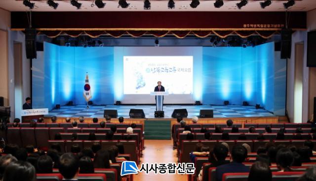 ÇÑÆí, ±¤ÁÖ±¤¿ª½Ã±³À°Ã» Çö¼®·æ Á¤Ã¥±âȹ°ú °úÀåÀº "Çà»çÀåÀ» ã¾ÆÁØ ¸¹Àº ºÐµé°ú ´Ùä·Î¿î ÇÁ·Î±×·¥À» ÁغñÇÏ´À¶ó ¾Ö¾´ °ü°èÀÚ ¸ðµÎ¿¡°Ô °¨»ç¸¦ ÀüÇÑ´Ù"¸ç "À̹ø ³²ºÏ±³À°±³·ù ±¹Á¦ Æ÷·³ÀÌ ±¤ÁÖÀÇ Çлý°ú ±³»ç, ½Ã¹Îµé¿¡°Ô ±¤ÁÖÇлýµ¶¸³¿îµ¿ÀÌ °¡Áø Á¤ÀÇ¿Í ¿ë±â µî ±¤ÁÖÀÇ ¼ÒÁßÇÑ °¡Ä¡¸¦ ¹ÙÅÁÀ¸·Î Çѹݵµ ÆòÈÅëÀÏ È¯°æÀ» Á¶¼ºÇØ ³ª°¡´Â ¸¶Áß¹°ÀÌ µÇ±â ¹Ù¶õ´Ù"°í ¸»Çß´Ù.