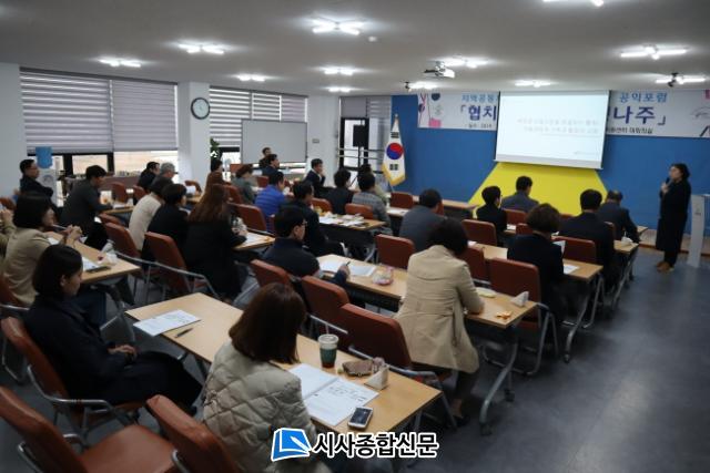 À̹ø Æ÷·³Àº ½Ã¹ÎÀÌ Âü¿©ÇÏ´Â °ø·ÐÀÇ ÀåÀ» ÅëÇØ Áö¿ª »ó»ý¿¡ ´ëÇÑ ³íÀǸ¦ Ȱ¼ºÈ½Ã۰íÀÚ ¸¶·ÃµÆÀ¸¸ç, ¡®ÇùÄ¡¸¦ ÅëÇÑ »ó»ý³ªÁÖ¡¯¸¦ ÁÖÁ¦·Î ÇùÄ¡ °³³ä Á¤¸³À» À§ÇÑ Àü¹®°¡ ¹ßÁ¦¿Í Âü¼®ÀÚ °£ÀÇ ÀǰßÀ» °øÀ¯ÇÏ´Â ÁúÀÇÀÀ´äÀÌ ÁøÇàµÆ´Ù.