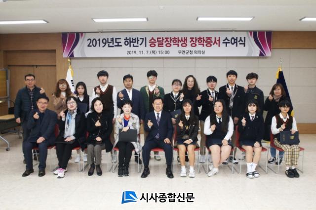 [½Ã»çÁ¾ÇսŹ® = ¿À½ÂÅà ±âÀÚ] ¹«¾È±º ½Â´ÞÀåÇÐȸ´Â Áö³ 7ÀÏ ¹«¾È±ºÃ» ȸÀǽǿ¡¼ ÀåÇлý ¹× ¿ì¼öÁöµµ±³»ç, Çкθð 50¿©¸íÀÌ Âü¼®ÇÑ °¡¿îµ¥ ½Â´ÞÀåÇÐ±Ý Àü´Þ½ÄÀ» °¡Á³´Ù.