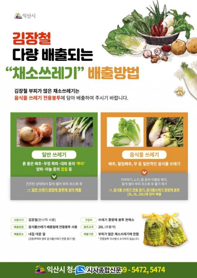 ÀÍ»ê½Ã¿¡ µû¸£¸é ±èÀåö °¡Á¤¿¡¼ ¹èÃâµÇ´Â ¹«³ª ¹èÃß µî ä¼Ò·ù´Â ä¼Ò¾²·¹±â Àü¿ë ³ë¶õ»ö ºÀÅõ¸¦ ÀÌ¿ëÇØ ¹èÃâÇØ¾ß ÇÑ´Ù. ¹Ý¸é ±èÀå ä¼Ò¸¦ ´Ùµë´Â °úÁ¤¿¡¼ ³ª¿À´Â ÂÊÆÄ, ´ëÆÄ, ¸¶´Ã, ¾çÆÄ µîÀÇ »Ñ¸®³ª ²®ÁúÀº ÀϹݾ²·¹±â·Î ºÐ·ùµÈ´Ù.