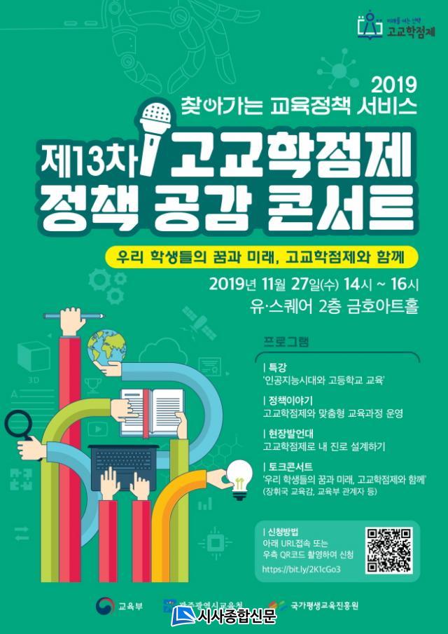 ÇÑÆí, ±¤ÁÖ±¤¿ª½Ã±³À°Ã» ÁߵÀ°°ú ¿ìÀçÇÐ °úÀåÀº¡°°í±³ÇÐÁ¡Á¦ Á¤Ã¥ ÃßÁøÀ¸·Î °íµîÇб³´Â ÇлýÀÇ Áø·Î¿Í Àû¼ºÀ» °í·ÁÇÑ Çлý ¸ÂÃãÇü ±³À°°úÁ¤À» Æí¼º¡¤¿î¿µÇϰí ÇлýµéÀÇ »ý°¢ÀÇ ÈûÀ» Ű¿ì´Â ¼ö¾÷À» ¿î¿µÇϰí ÀÖ´Ù¸ç, °í±³ÇÐÁ¡Á¦ Á¤Ã¥ °ø°¨ ÄܼƮ°¡ º¯ÈµÇ°í ÀÖ´Â °íµîÇб³ ±³À°ÀÇ ¸ð½À°ú °í±³ÇÐÁ¡Á¦¿¡ ´ëÇÑ Çкθð´ÔÀÇ ÀÌÇØ¸¦ ³ôÀÌ´Â °è±â°¡ µÉ °Í¡±À̶ó°í ¹àÇû´Ù. Áß°í Çкθð ¹× ±³¿ø 300¿© ¸íÀ» ´ë»óÀ¸·Î ÁøÇàÇÏ´Â À̹ø ÄܼƮ´Â ÀÎÅͳÝÀ¸·Î »çÀü ½Åû(https://bit.ly/2K1cGo3)ÇÏ¿© Âü¿©ÇÒ ¼ö ÀÖ´Ù.