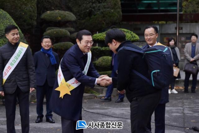 [½Ã»çÁ¾ÇսŹ® = ¿À½ÂÅà ±âÀÚ] À̿뼷 ±¤ÁÖ±¤¿ª½ÃÀåÀÌ 2020Çг⵵ ´ëÇмöÇдɷ½ÃÇèÀÏÀÎ 14ÀÏ ¿ÀÀü ¼±¸ ÈÁ¤µ¿ 26Áö±¸ Á¦20½ÃÇèÀå ±¤´ö°íµîÇб³ Á¤¹®¾Õ¿¡¼ ¼öÇè»ýµéÀ» ÀÀ¿øÇϰí ÀÖ´Ù.