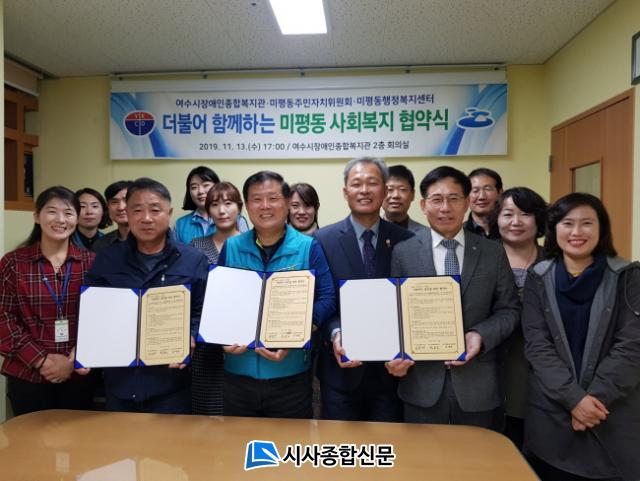 [½Ã»çÁ¾ÇսŹ® = Àå¹Î±Ô ±âÀÚ] ¿©¼ö½Ã ¹ÌÆòµ¿ ÇàÁ¤º¹Áö¼¾ÅÍ¿Í ÁÖ¹ÎÀÚÄ¡À§¿øÈ¸°¡ Áö³ 13ÀÏ ¿ÀÈÄ ¿©¼ö½ÃÀå¾ÖÀκ¹Áö°ü°ú ¡®»çȸº¹Áö ¹ßÀü Çù¾à¡¯À» ü°áÇß´Ù.