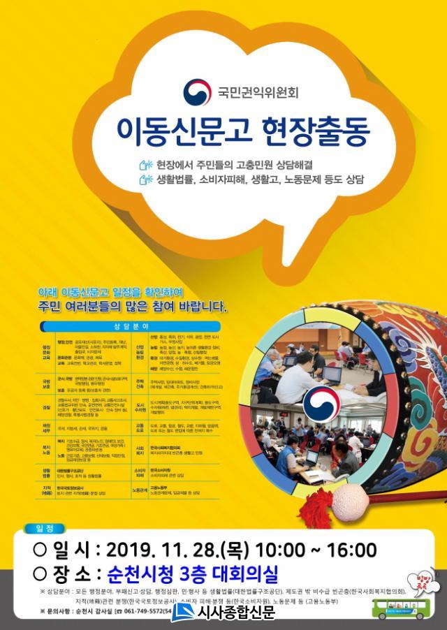 À̹ø ¡®À̵¿½Å¹®°í¡¯¿î¿µÀº ¼¼Á¾½Ã¿¡ ¼ÒÀçÇÑ ±¹¹Î±ÇÀÍÀ§¿øÈ¸¸¦ ¹æ¹®Çϰųª ¹Î¿ø¼ºñ½º¸¦ Á÷Á¢ ¹Þ±â °ï¶õÇÑ ¼øÃµ½Ã¸¦ ºñ·ÔÇÑ ¿©¼ö½Ã, ±¤¾ç½Ã, ±¸·Ê±º ÁֹεéÀÇ »ýȰ ¼Ó °íÃæ¹Î¿ø ÇØ°á°ú ÇöÀåÁ᫐ Àû±ØÇàÁ¤À» À§ÇØ ¼øÃµ½Ã°¡ ÀÛ³â 12¿ù¿¡ °ÇÀÇÇØ ÀÌ·ç¾îÁ³´Ù.