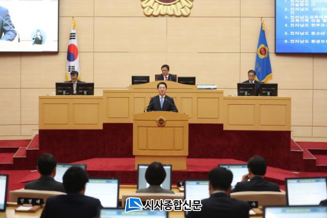 ±è¿µ·Ï Àü¶ó³²µµÁö»ç´Â Áö³ 21ÀÏ µµÀÇȸ º»È¸ÀÇÀå¿¡¼ 2020³â ¿¹»ê¾ÈÀ» Á¦ÃâÇÏ°í µµÁ¤ ¹æÇâÀ» ´ãÀº ½ÃÁ¤¿¬¼³À» Çß´Ù. ±è Áö»ç´Â ½ÃÁ¤¿¬¼³¿¡¼ ¡°±×µ¿¾È ¡®ºí·ç ÀÌÄÚ³ë¹Ì¡¯¶ó´Â »õ õ ³â ºñÀüÀ» ¼¼¿ì°í, ÇØ¹¬Àº Áö¿ª ÀÎÇÁ¶ó ÇØ°áÇÏ¸ç ±¹°í¿¹»ê 7Á¶ ¿ø ½Ã´ë¿¡ µ¹ÀÔÇÏ´Â µî µµÁ¤ ¹ßÀüÀ» À̲ø ±â¹ÝÀ» Âø½ÇÈ÷ ´Û¾Æ¿Ô´Ù¡±°í Áö³ µµÁ¤À» ¼ÒȸÇß´Ù.
