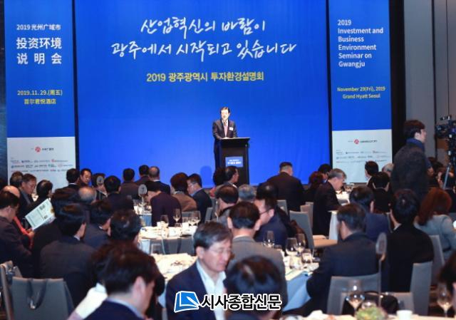 29ÀÏ ¼¿ï ±×·£µå ÇÏ¾æÆ® È£ÅÚ¿¡¼ ¿¸° À̹ø ¼³¸íȸ´Â ±¤Áֽð¡ ¿ªÁ¡ÀûÀ¸·Î ÃßÁøÇϰí ÀÖ´Â ÀΰøÁö´É»ê¾÷, ģȯ°æÀÚµ¿Â÷, ½º¸¶Æ®¿¡³ÊÁö, °ø±â»ê¾÷ µî ±¤Áֽà »ê¾÷À°¼º ÇÁ·ÎÁ§Æ®¿Í ÅõÀÚȯ°æ µîÀ» ¼³¸íÇÏ°í ±â¾÷µéÀÇ ÅõÀÚ¸¦ À̲ø¾î³»±â À§ÇØ ¸¶·ÃµÆ´Ù.