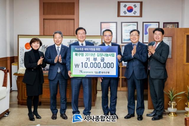 [½Ã»çÁ¾ÇսŹ® = ¿À½ÂÅà ±âÀÚ] ±¤ÁÖÀºÇà(ÀºÇàÀå ¼ÛÁ¾¿í)Àº Áö³ 4ÀÏ ±¤ÁÖ ºÏ±¸Ã»¿¡¼ ¼ÛÁ¾¿í ±¤ÁÖÀºÇàÀå°ú ¹®ÀÎ ±¤ÁÖ±¤¿ª½Ã ºÏ±¸Ã»Àå, °ü°èÀÚ µîÀÌ Âü¼®ÇÑ °¡¿îµ¥ ºÏ±¸Ã»ÀÌ ÁøÇàÇÏ´Â ¡®2019³â ±èÀå ³ª´® »ç¾÷¡¯¿¡ 1õ¸¸¿øÀ» ±âŹÇÏ´Â ±âºÎ±Ý Àü´Þ½ÄÀ» °¡Á³´Ù°í ¹àÇû´Ù.