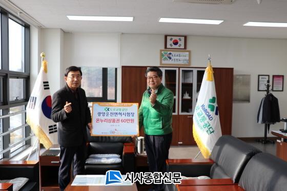 [½Ã»çÁ¾ÇսŹ® = Àå¹Î±Ô ±âÀÚ] µµ·Î±³Åë°ø´Ü ±¤¾ç¿îÀü¸éÇã½ÃÇèÀå(ÀåÀå À̱¤Èñ)¿¡¼´Â Áö³ 2019³â 12¿ù 10ÀÏ(È) 11:00 ¿¬¸»¿¬½Ã¸¦ ¸Â¾Æ ÀÌ¿ôµ½±â ÀÏȯÀ¸·Î (Àç)±¤¾ç½Ã»ç¶û³ª´®º¹ÁöÀç´Ü(ÀÌ»çÀå ¼°æ¼®)¿¡ ¿Â´©¸® »óǰ±Ç 60¸¸¿øÀ» Àü´ÞÇß´Ù.
