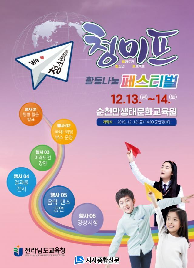 Àü¶ó³²µµ±³À°Ã»Àº ¿À´Â 13ÀÏ(±Ý) ~ 14ÀÏ(Åä) ¼øÃµ¸¸»ýŹ®È±³À°¿ø ÀÏ¿ø¿¡¼ µµ³» Çлý ¹× û¼Ò³â, Çкθð, ±³Á÷¿ø, Áö¿ª¹ÎÀ» ´ë»óÀ¸·Î ¡®2019 û¼Ò³â¹Ì·¡µµÀüÇÁ·ÎÁ§Æ® Ȱµ¿³ª´® Æä½ºÆ¼¹ú¡¯À» °³ÃÖÇÑ´Ù.