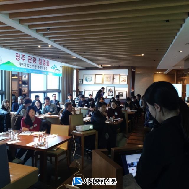 À̳¯ ¼³¸íȸ´Â ±¤ÁÖÀÇ °ü±¤µµ½Ã ºê·£µå À̹ÌÁö¸¦ °³¼±Çϰí Àü¹®¿©Çà»ç ³×Æ®¿öÅ©¸¦ È®´ëÇϱâ À§ÇÑ ÀÚ¸®·Î, ¢ß¸ðµÎÅõ¾î³×Æ®¿öÅ©, ¢ß·Ôµ¥°ü±¤°³¹ß, ¼º±¤Ç×°ø¿©Çà»ç, ±ÂÇÊÅõ¾î, Á¦ÀÎDMCÄÚ¸®¾Æ µî 30¿© °³ Àιٿîµå Àü¹® ¿©Çà¾÷ü ´ëÇ¥¿Í ±¤ÁÖ½Ã, ±¤ÁÖ°ü±¤ÄÁº¥¼Çºä·Î °ü°èÀÚ µî 60¿© ¸íÀÌ Âü¿©Çß´Ù.