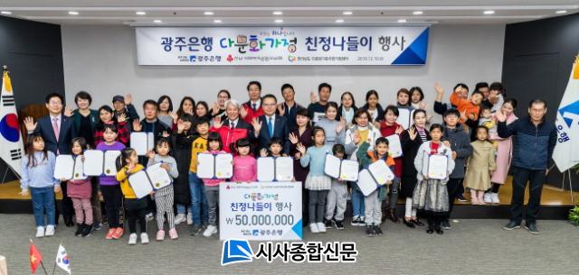 ¼ÛÁ¾¿í ±¤ÁÖÀºÇàÀåÀº ¡°³¸¼± Ÿ±¹¿¡¼ ¾ð¾î¿Í ¹®È µî ±Øº¹ÇØ¾ß ÇÒ ¾î·Á¿òÀÌ ¸¹¾ÒÀ»ÅÙµ¥ ²à²àÇÏ°Ô ÀûÀÀÇØ ³ª°¡´Â À̹ÎÀÚµéÀ» ÀÀ¿øÇϸç À̹ø ¡®´Ù¹®È°¡Á¤ Ä£Á¤³ªµéÀÌ È¯¼ÛÇà»ç¡¯¸¦ ÁغñÇßÀ¸´Ï °íÇâ¿¡¼ ÇູÇÑ ½Ã°£ º¸³»±æ ¹Ù¶õ´Ù. ¾ÕÀ¸·Îµµ ±¤ÁÖÀºÇàÀº °¢°è°¢ÃþÀÇ Áö¿ª¹Î¿¡°Ô µû¶æÇÑ ³ª´®À» ½ÇõÇÏ´Â »çȸ°øÇå»ç¾÷À¸·Î ÇÔ²² µ¿ÇàÇϰڴ١±°í ¸»Çß´Ù.