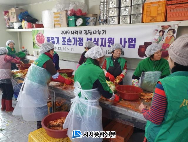 À̹ø ³ª´® Çà»ç´Â ±¸·Ê±º»õ¸¶À»ºÎ³àȸ(ȸÀå ÃÖ°æ¿Á)¿ø 20¿©¸íÀÌ ¹Ù»Û »ý¾÷¿¡µµ ºÒ±¸ÇÏ°í ½º½º·Î ±èÀåÇϱ⠾î·Á¿î °ü³» Àú¼Òµæ Á¶¼Õ°¡Á¤ 44¼¼´ë¿¡°Ô µû¶æÇÑ °Ü¿ïÀ» º¸³¾ ¼ö ÀÖµµ·Ï ±èÀå±èÄ¡¿Í ½Ò(20kg)À» Àü´ÞÇϸç ÀÌ¿ô»ç¶ûÀ» ½ÇõÇß´Ù.