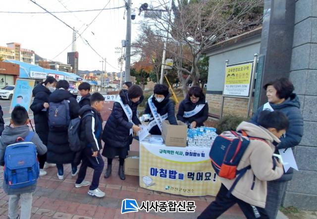 [½Ã»çÁ¾ÇսŹ® = ¿À½ÂÅà ±âÀÚ] °Áø±ºº¸°Ç¼Ò°¡ Áö³ 12ÀÏ °ÁøÁß¾ÓÃʵîÇб³ Á¤¹® ¾Õ¿¡¼ ÃʵîÇлý°ú À¯Ä¡¿ø ¿ø¾Æ, ±³Á÷¿øµî 800¿©¸íÀ» ´ë»óÀ¸·Î ¾ÆÄ§¹ä ¸Ô±â ¿µ¾ç Ä·ÆäÀÎÀ» Àü°³Çß´Ù.