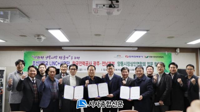 Á¶¼±´ëÇб³ LINC+»ç¾÷´ÜÀº Áö³ 12¿ù 6ÀÏ ¿ÀÀü 11½Ã ¾çµ¿½ÃÀå º¹°³»ó°¡ 3Ãþ ´Ù¸ñÀûȸÀǽǿ¡¼ Çѱ¹Àü·Â°ø»ç ±¤ÁÖÀü³²º»ºÎ, ¾çµ¿½ÃÀå»óÀο¬ÇÕȸ¿Í ÇÔ²² ¾÷¹«Çù¾à(MOU)À» ü°áÇϰí, ¡®¾ÈÀüÇÑ ¾çµ¿½ÃÀåÀ» ¸¸µé±â¡¯¿¡ Çù·ÂÇϱâ·Î Çß´Ù.