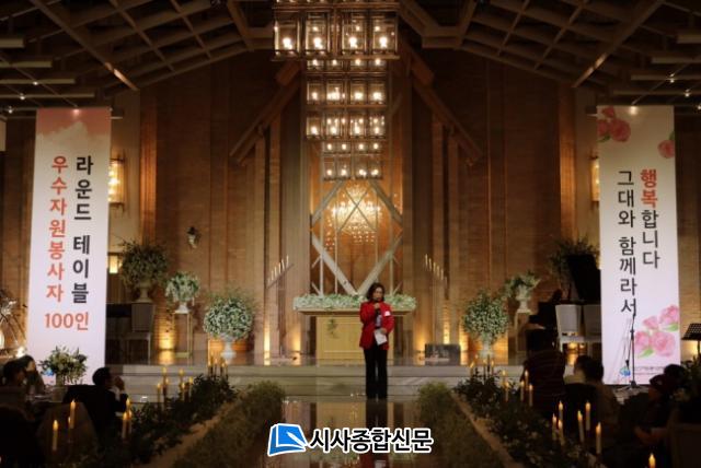 À̳¯ Çà»ç´Â ÇÑ ÇØ µ¿¾È Áö¿ª»çȸ º¯È¸¦ À§ÇÑ ´Ù¾çÇÑ È°µ¿À» ÇØ ¿Â ¿ì¼öºÀ»çÀڵ鿡°Ô °¨»ç¸¦ ÀüÇϱâ À§ÇØ ¸¶·ÃÇÑ Çà»ç·Î ±è»ïÈ£ ±¤»ê±¸Ã»ÀåÀ» ºñ·ÔÇØ ¿ì¼öÀÚ¿øºÀ»çÀÚ 100¿© ¸íÀÌ Âü¼®ÇÑ °¡¿îµ¥ ¿·È´Ù.