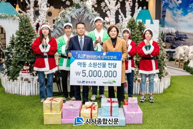 ±¤ÁÖÀºÇàÀº ⸳ 51ÁÖ³âÀ» ¸Â¾Æ °¡Á¤È¯°æÀÌ ¾î·Á¿î Áö¿ª¾Æµ¿ 51¸íÀ» KJ¿ø´õ·£µå¿¡ ÃÊ´ëÇØ ¼ºÅºÀý ¼±¹°À» Àü´ÞÇß´Ù. ±¤ÁÖÀºÇà Áö¿ª»ç¶ûºÀ»ç´Ü Á÷¿øµéÀº Á÷Á¢ »êŸ·Î ºÐÀåÇØ »çÀü Á¶»çÇÑ ¾î¸°À̵éÀÇ ¼Ò¿ø ¸®½ºÆ®¸¦ ¹ÙÅÁÀ¸·Î ÆÐµùÁ¡ÆÛ, ¿îµ¿È, Àå³°¨ µî ¼±¹°À» Àü´ÞÇϰí, KJ¿ø´õ·£µå¸¦ ÇÔ²² °ü¶÷Çϸç Áñ°Å¿î ½Ã°£À» °¡Á³´Ù.