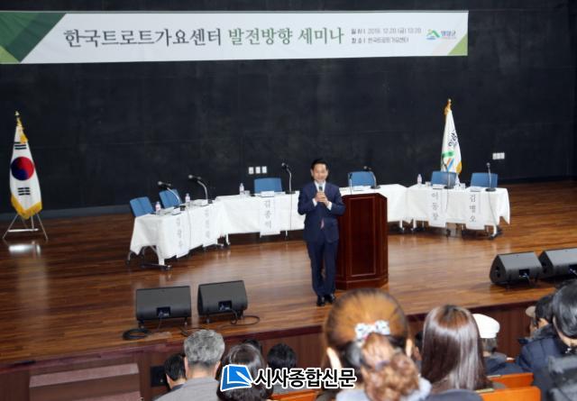 Àüµ¿Æò ¿µ¾Ï±º¼ö´Â Àλ縻À» ÅëÇØ ¡°Çѱ¹Æ®·ÎÆ®°¡¿ä¼¾ÅͰ¡ ¾ÕÀ¸·Î ³ª¾Æ°¡¾ß ÇÒ ¹ßÀü ¹æÇâÀ» ¸ð»öÇÏ´Â ¶æ±íÀº ÀÚ¸®À̸ç, ¾ÕÀ¸·Î Æ®·ÎÆ® ¾ÆÄ«µ¥¹Ì¿Í ´ë°ø¿¬ÀåÀ» ¸¸µé°í, ¿µ¾Ï¾Æ¸®¶û °¡¿äÁ¦¸¦ °³ÃÖÇÏ´Â µî ±³À°°ú °ø¿¬ÀÇ º¹ÇÕ¹®È°ø°£À¸·Î Ȱ¿ëÇÏ¿© Æ®·ÎÆ® ½ºÅ¸ ¾ç¼º±â°ü°ú ÀÚ¶û½º·± ÀüÅë°¡¿äÀÎ Æ®·ÎÆ®¸¦ °è½Â ¹ßÀü½ÃÄÑ, Çѱ¹ ´ëÁßÀ½¾Ç ¹®È ¹ßÀü¿¡ ±â¿©ÇÔÀº ¹°·Ð Æ®·ÎÆ®ÀÇ ¸ÞÄ« ¿µ¾ÏÀÇ °ü±¤ Ȱ¼ºÈ·Î Áö¿ª°æÁ¦¿¡ Ȱ·ÂÀ» ºÒ¾î³ÖÀ» ¼ö ÀÖµµ·Ï ÃÖ¼±À» ´ÙÇϰڴ١±°í ¹àÇû´Ù.