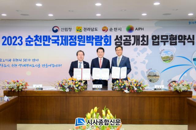 Àü¶ó³²µµ¿Í ¼øÃµ½Ã, AIPH KOREA(±¹Á¦¿ø¿¹»ý»êÀÚÇùȸ Çѱ¹À§¿øÈ¸)´Â 2023¼øÃµ¸¸±¹Á¦Á¤¿ø¹Ú¶÷ȸ À¯Ä¡ ¹× ¼º°ø°³ÃÖ¸¦ À§ÇØ ¿À´Ã(3ÀÏ) ½Ãû ¼ÒȸÀǽǿ¡¼ ¾÷¹«Çù¾àÀ» ü°áÇß´Ù.
