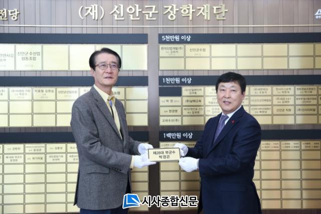 ¹Ú¿ì·® ÀÌ»çÀåÀº ¹Ú°æ°ï (Àü)ºÎ±º¼ö¿Í ÇÔ²² ¸í¿¹ÀÇ Àü´ç¿¡ Çå¾×ÇÏ¸ç ¡°¹Ú°æ°ï ºÎ±º¼öÀÇ ³²´Ù¸¥ ½Å¾È±º »ç¶û°ú ¹Ì·¡ÀÇ ÀÎÀ縦 À§ÇÑ ¼þ°íÇÑ ¶æÀÌ ´ã±ä ÀåÇбâ±ÝÀº ¾î·Æ°í Èûµé°Ô °øºÎÇϰí ÀÖ´Â ½Å¾È±º ÇлýµéÀ» À§ÇØ ¼ÒÁßÇÏ°Ô »ç¿ëÇϰڴٸç, ¼öÇýÀÚµéÀÌ ±âŹÀÚ¿¡°Ô °¨»çÇÏ´Â ¸¶À½À» °®°í ÈǸ¢ÇÑ ÀÎÀç·Î ¼ºÀåÇØ¼ ´Ù½Ã »çȸ¿¡ ȯ¿øÇÏ´Â ¼±¼øÈ¯ÀÌ ÀÌ·ç¾îÁ³À¸¸é ÁÁ°Ú´Ù.¡È°í °¨»çÀÇ ¶æÀ» Àü´ÞÇß´Ù.