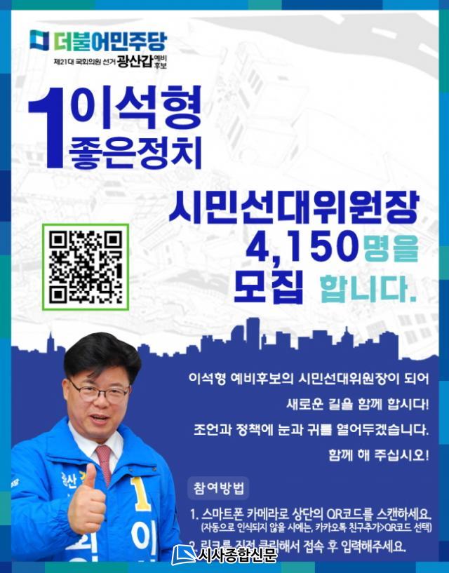 | À̼®Çü ±¤ÁÖ ±¤»ê(°©)¿¹ºñÈĺ¸, ½Ã¹Î¼±´ëÀ§¿øÀå 4,150¸í ¸ðÁý |